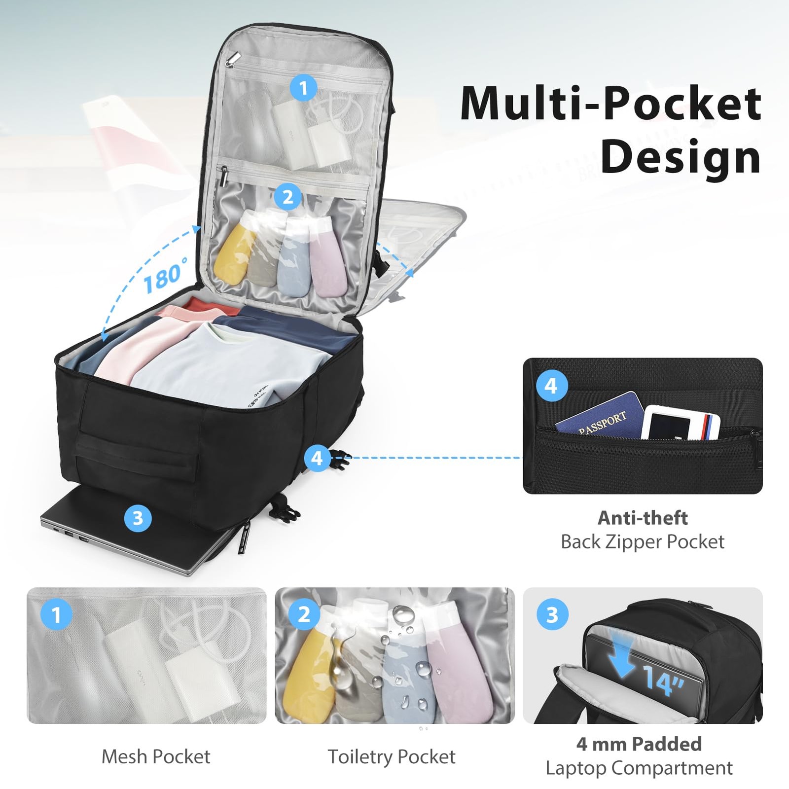 Perfect Size Designed for Ryanair (40x20x25cm). Fits under seat on Ryanair, EasyJet & budget airlines. Durable, water-resistant, and comfortable to carry.