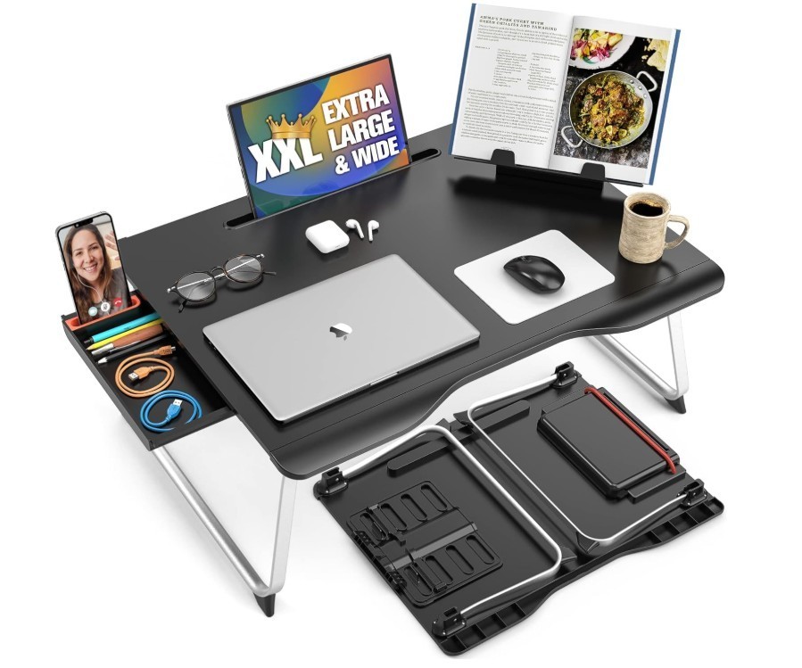 Laptop Desk for Bed [Premium XXL] with Drawer Folding Legs Black Onyx NIB