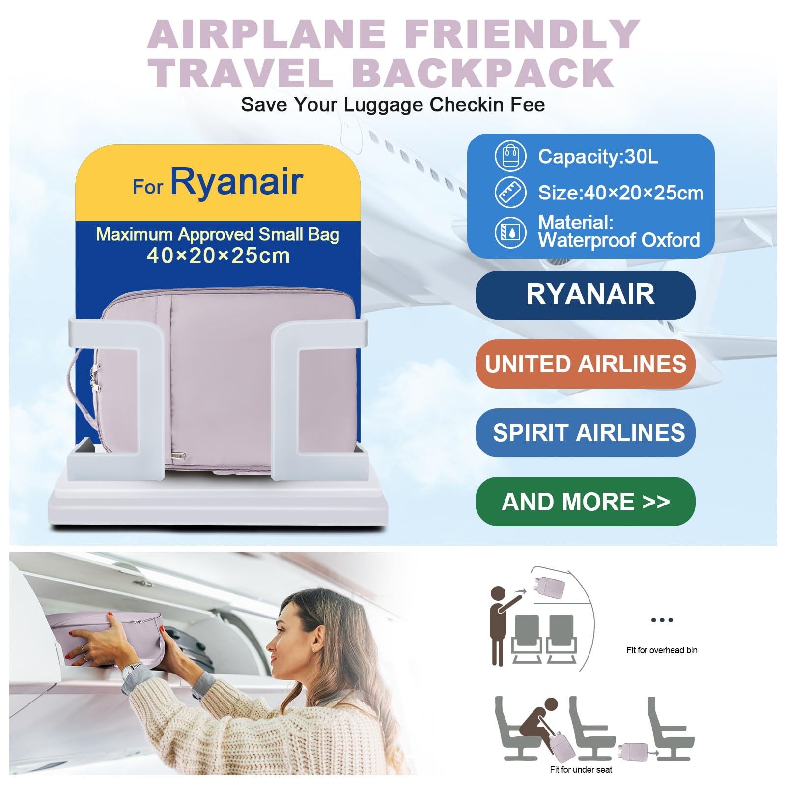 Carry On Backpack, United Airlines Personal Item Bag, Underseat Ryanair 40x20...
